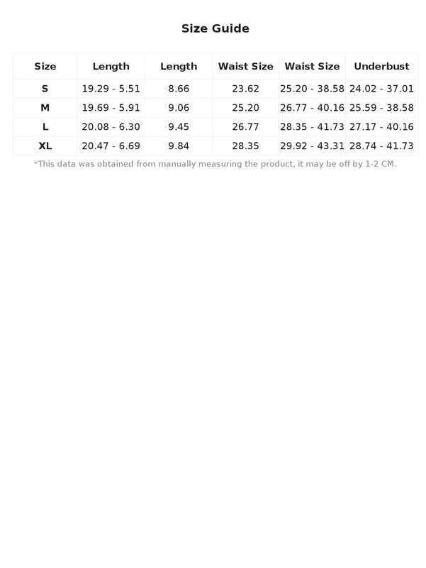 XL:Length:20.5/6.7IN,Underbust:28.7-41.7IN,Waist Size:28.3IN,Length:9.8IN,Waist Size:29.9-43.3IN