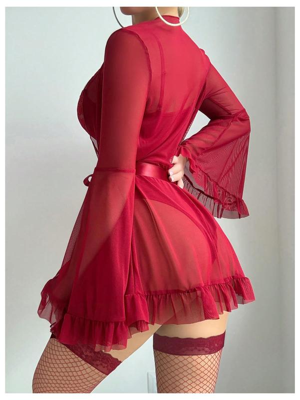 Features: 5 piece, lace trim, underwire, long sleeve robe, fishnet, naughty lingerie for women