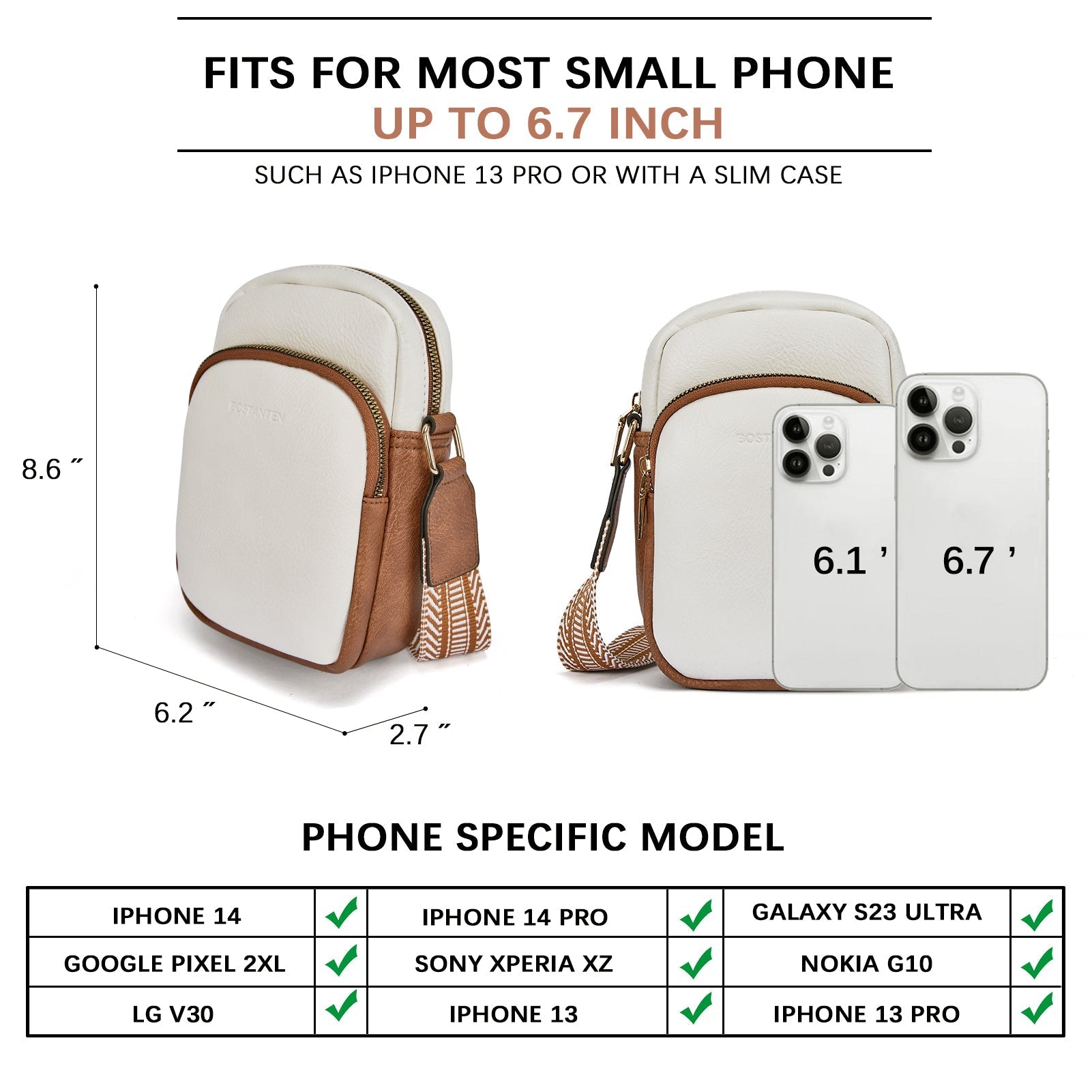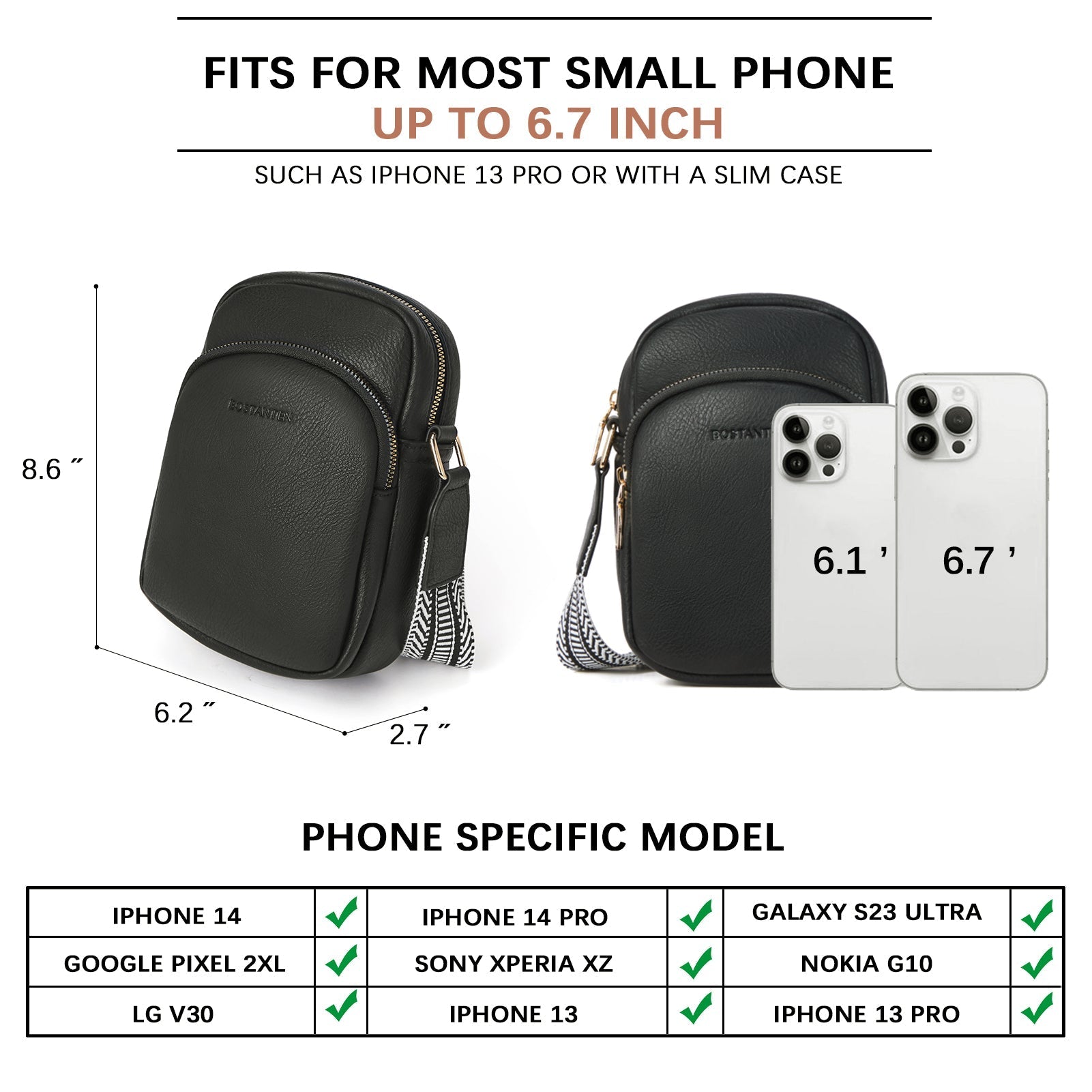 - 【Suitable Most Phone Size】2 Phone Space--Front zip pocket (Only fit 6.1" phone) + Inner phone slot (Fit most size phone), Top SBS Zipper offer you to salely keep phone in right place & Convenient access phone when in outside. It fits most large cell phone including iPhone 14 Pro, Galaxy S23+, Google Pixel 2XL, Sony Xperia XZ, Nokia G10, LG V30, OnePlus Nord etc.