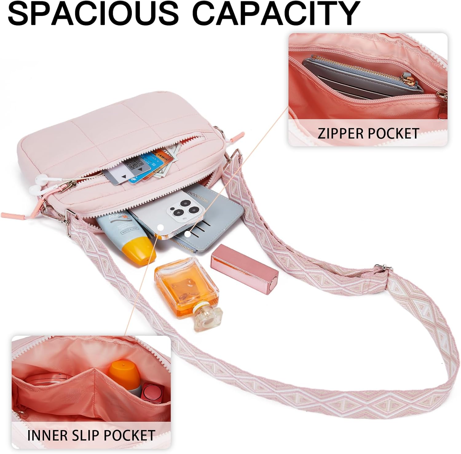 Made with high-quality soft down fabric, it is very light and comfortable to wear. Waterproof materials ensure that your items stay dry. Note that this crossbody bag cannot be washed or machine washed.