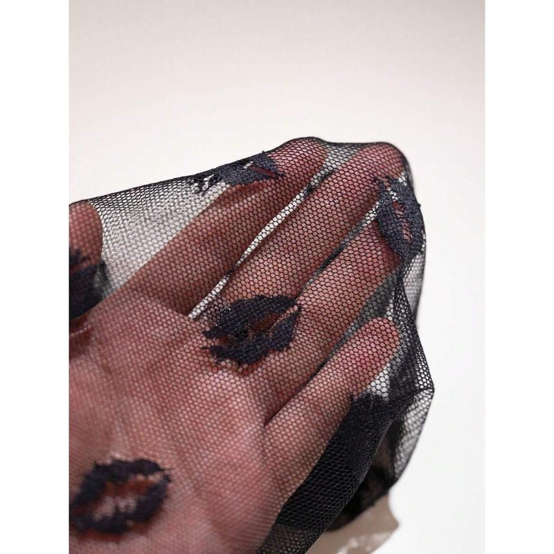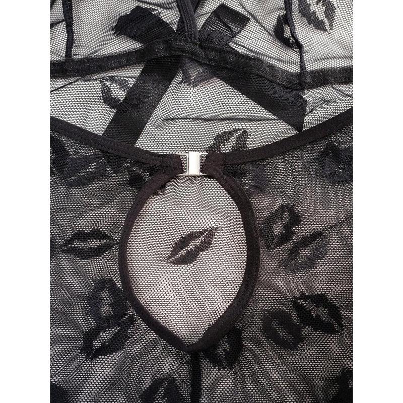SuitURBody Sexy Lip Pattern Mesh Sheer Short Bodycon Nightgown , See Through Dress Loungewear Nightwear Womenswear Homewear Adjustable Nightie Sleeveless Black
