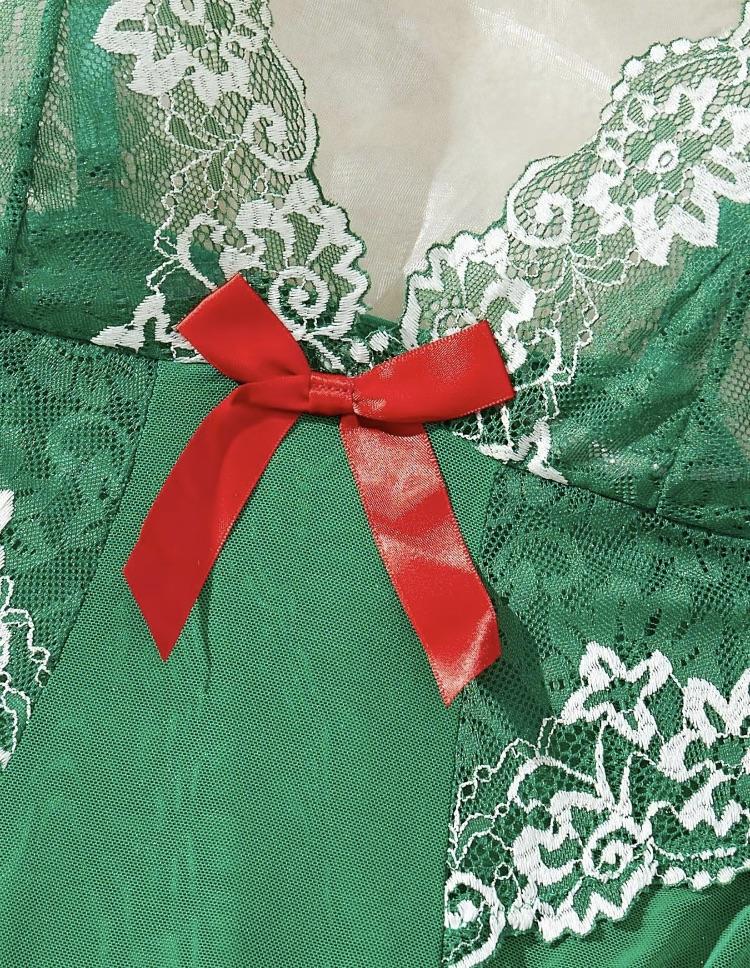 Ugreat Women's Contrast Lace Bow Decor Cami Nightdress with Thong, Comfort Night Gown for Women, Spaghetti Strap Backless, Elegant & Silky Design Green Glam Womenswear Loungewear Fitted Sleeveless Nightwear night gown women Homewear Minimalist