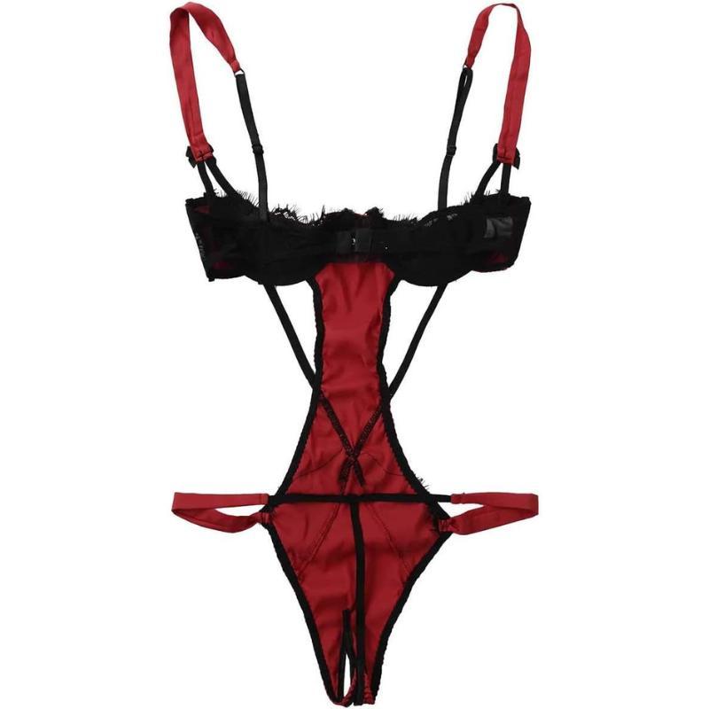 Women's Adjustable Lace Bodysuit and Thong Set Breathable Mesh Contoured Fit Casual Straps Womenswear Cosplay